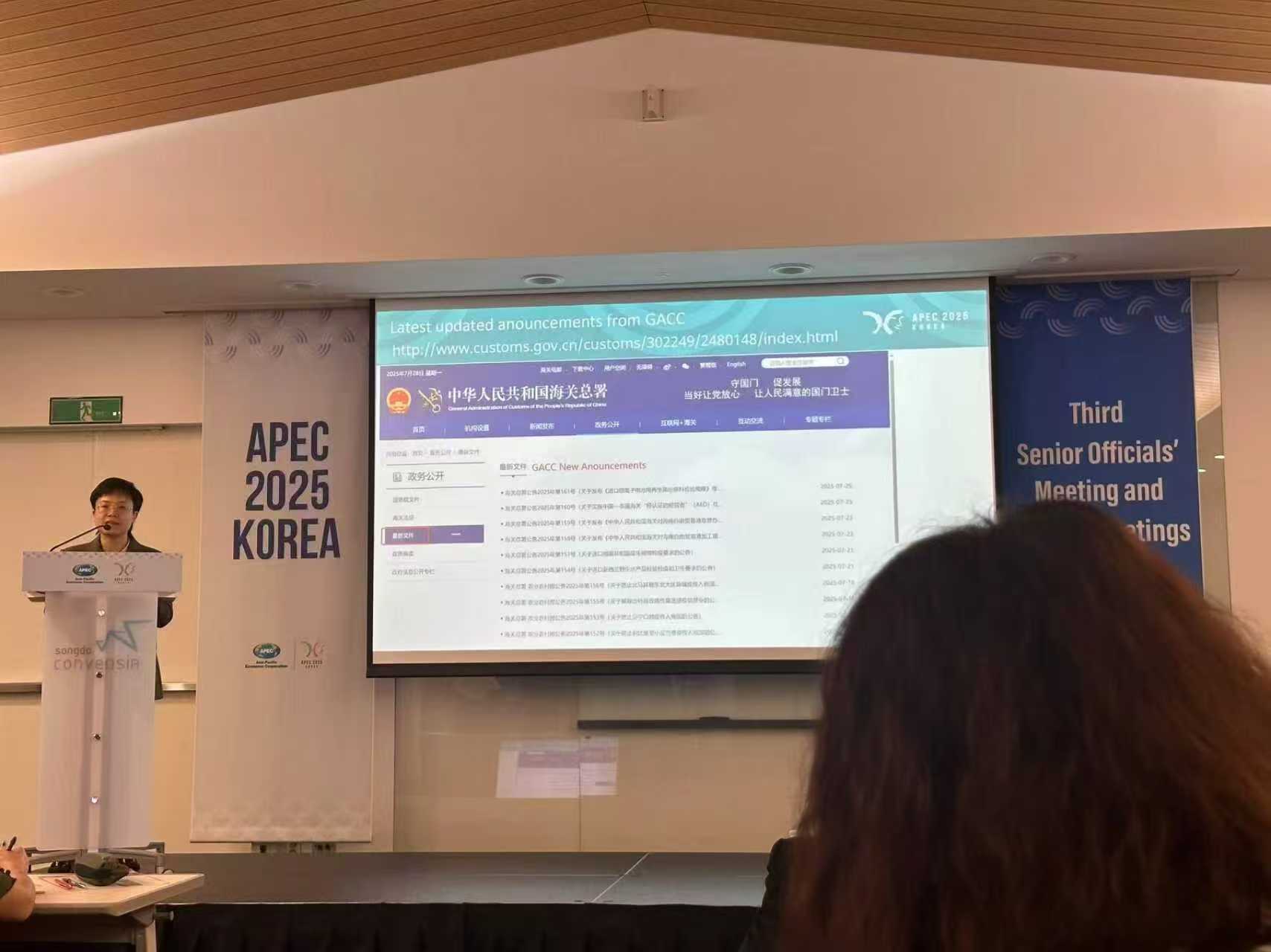 Chúng tôi được mời tham dự APEC 2025 Hàn Quốc, hội nghị chính thức cấp cao lần thứ ba của Diễn đàn Hợp tác Kinh tế Châu Á - Thái Bình Dương (APEC). Các quan chức cấp cao từ nhiều quốc gia đã tham gia trao đổi quan điểm toàn diện về cơ chế tiếp cận thị trường, rào cản thương mại, yêu cầu chính sách, cơ chế thủ tục, rủi ro thương mại và các điểm kiểm soát chính, chiến lược tuân thủ của doanh nghiệp, cổ tức thị trường và khủng hoảng, cùng nhiều chủ đề khác. Đại diện chính thức từ nhiều quốc gia đã tham gia trao đổi trực tiếp rất hiệu quả về "ý tưởng của tôi, yêu cầu của tôi; ý tưởng của bạn, yêu cầu của bạn", làm rõ tư duy chính sách và phương pháp đáp ứng các yêu cầu. Điều này đã giúp các doanh nghiệp đạt được sự tuân thủ sớm, cho phép họ giảm thiểu rủi ro và thực hiện các giao dịch hiệu quả trong một môi trường kinh doanh mà "sự tuân thủ trung thực tạo điều kiện thuận lợi cho sự tuân thủ, trong khi sự gian dối và vi phạm pháp luật sẽ bị trừng phạt".